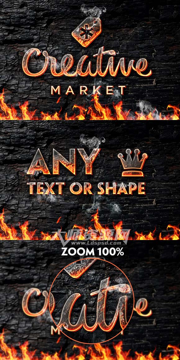 PS图层样式-火焰文字特效:Fire Art Photoshop Style