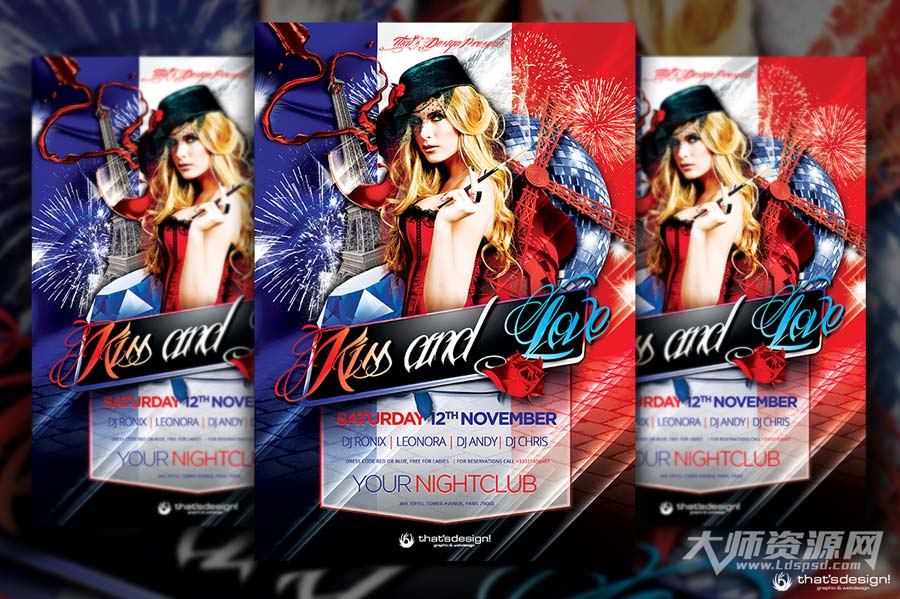 French Party Flyer Template V1,法国风格的情人节派对传单模板