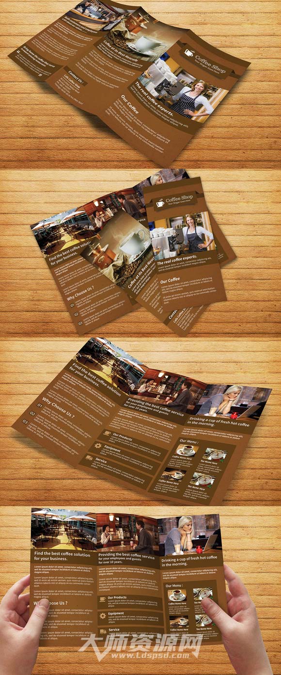 咖啡馆三折页菜单模板:Coffee Shop Restaurant Trifold Broch