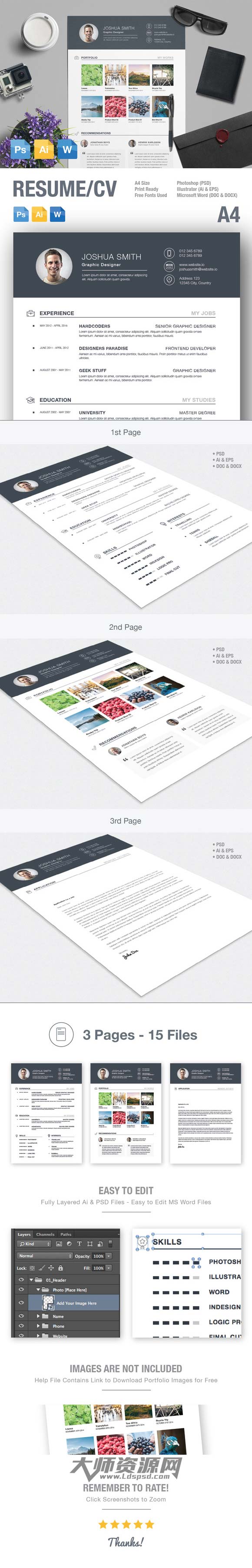 简洁清爽的个人简历模板:Resume & CV Template AI PSD DOCX