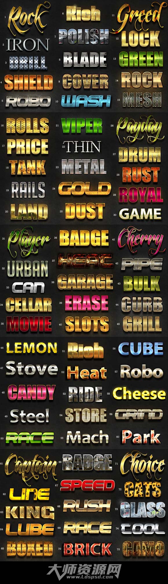 PS图层样式-75个游戏类文字特效:75 Premium Styles Developer Bundle