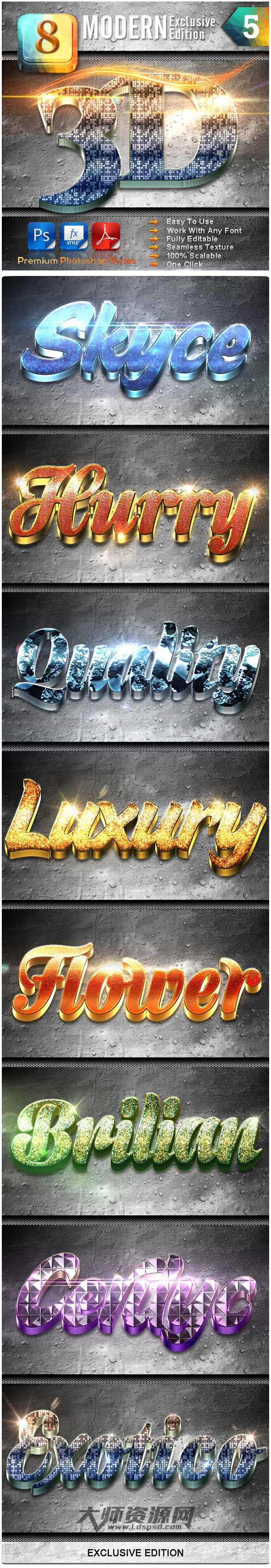 PS图层样式-8个时髦的3D文本特效:8 Modern 3D Exclusive Edition Vol.5