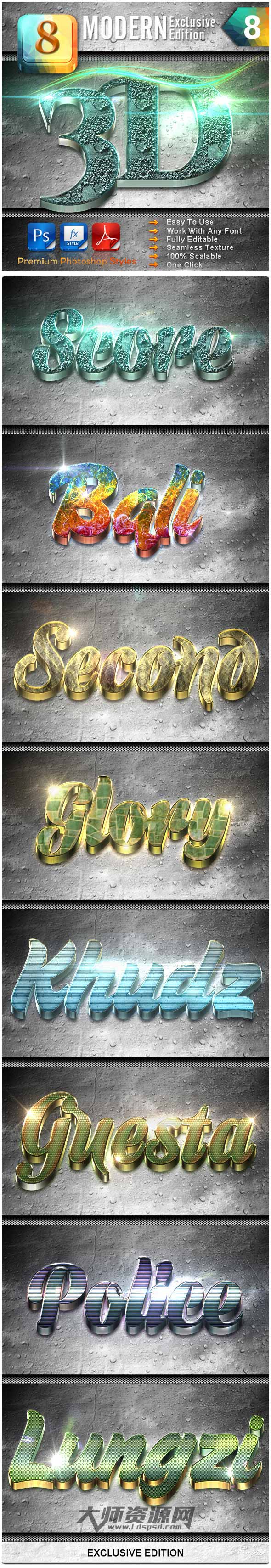 PS图层样式-8个时髦的3D文本特效:8 Modern 3D Exclusive Edition Vol.8