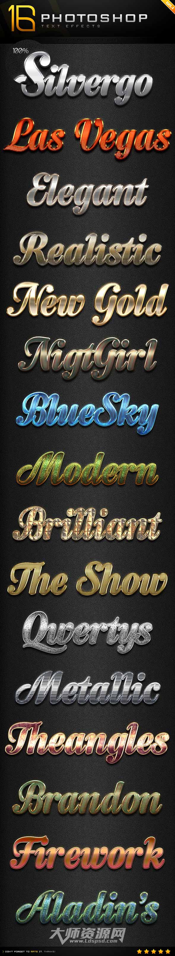 PS图层样式-16个金属质感文本:16 Photoshop Text Effect Styles GO.1
