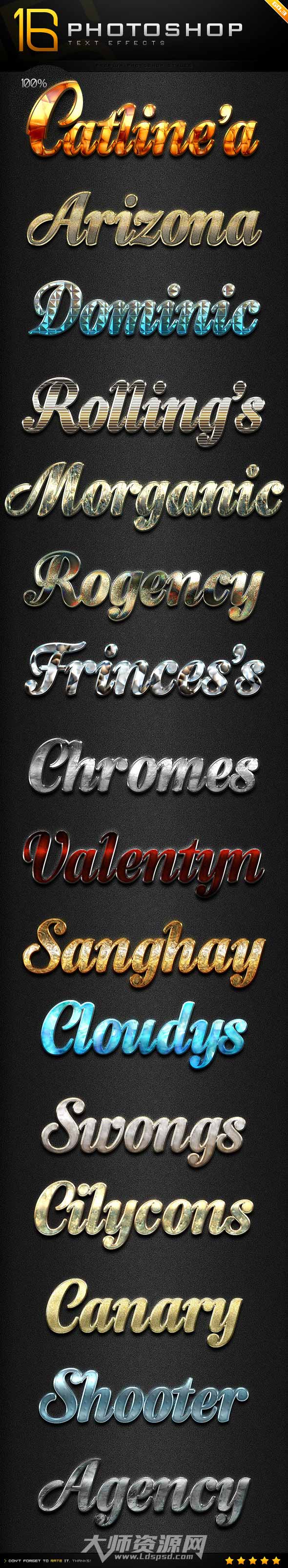 PS图层样式-16个金属质感文本:16 Photoshop Text Effect Styles GO.3