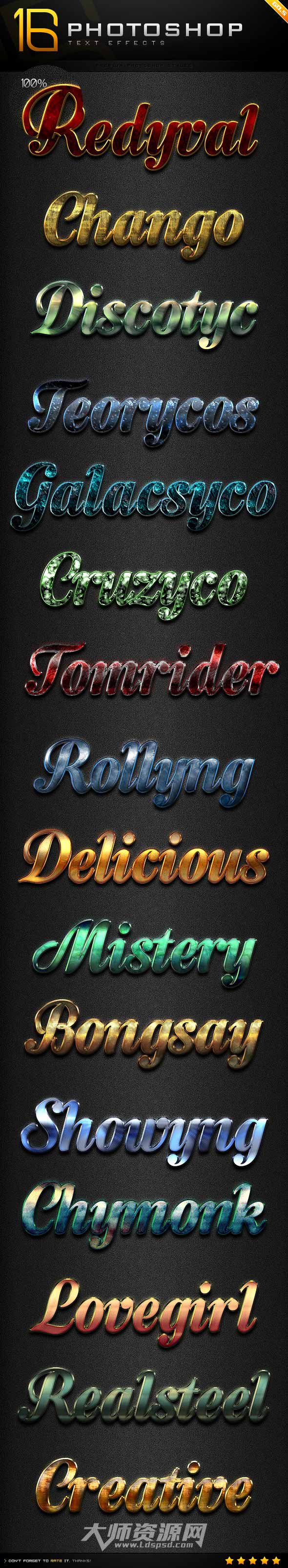 PS图层样式-16个金属质感文本:16 Photoshop Text Effect Styles GO.5