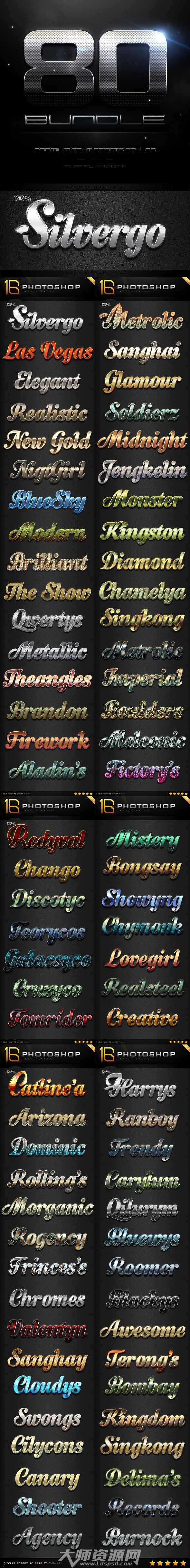PS图层样式-80个金属质感文本:80 Photoshop Text Effects Bundle